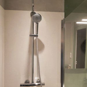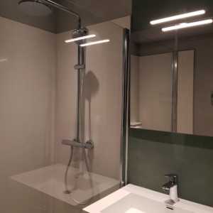 Pour cette rénovation dans un appartement ancien, nous avons du composer avec la petite surface de la pièce. Le projet s’articule autour d’une douche la plus grande possible, et d’équipements haut de gamme et faciles d’entretien.