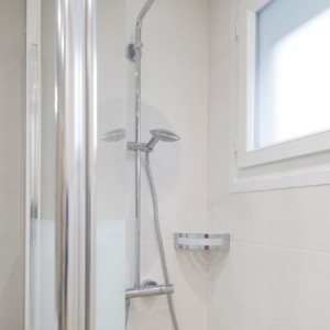 Cette salle de bains était suffisamment grande pour accueillir une douche et une baignoire, il a donc fallu repenser tout l’espace afin de donner une cohérence à l’ensemble. Le parti pris a été de garder une place importante pour chaque élément du projet, la circulation ainsi que l’ergonomie sont au cœur de cette pièce.